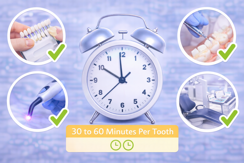 Most dental bonding treatments take 30 to 60 minutes per tooth and are completed in a single visit. If multiple teeth require treatment, we may recommend scheduling more than one appointment to ensure optimal comfort and results.