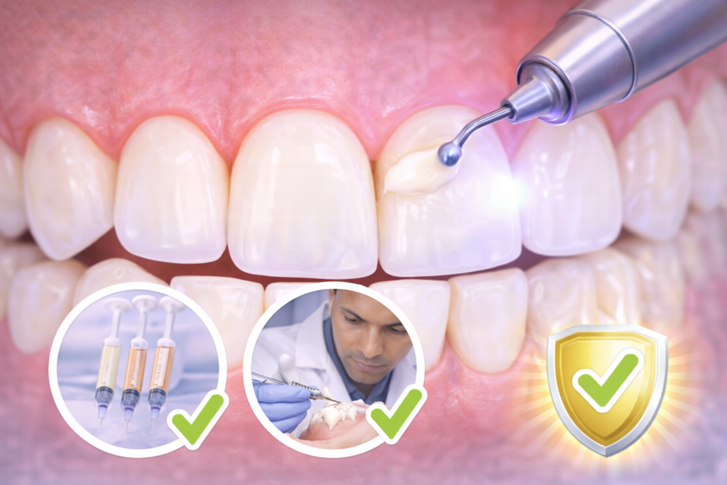 During treatment, the bonding material is applied as a soft, moldable compound. Dr. Rahul Mehta then shapes the resin to restore the tooth’s natural contour before using a special curing light to harden it securely in place.